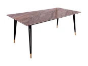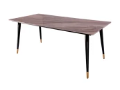 Обеденный дизайнерский стол Рио. Кажущаяся простота дизайна этого стола, компенсируется качеством материалов. Столешница: испанская керамика 6мм на закаленном стекле 6мм. Ножки: металл с черным глянцевым окрашиванием с золотыми металлическими наконечниками.