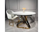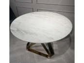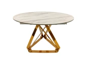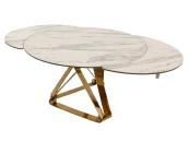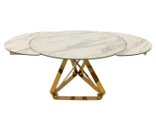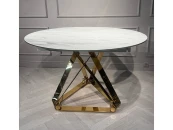 Стол обеденный раскладной. Столешница: 3мм итальянская керамика + 8mm закаленное стекло. Основание: нержавеющая сталь, глянцевое золото.