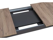 Кромка на столешнице и вставке АБС 2 мм, подстолье и ноги АБС 0,5 мм.. Раздвижной механизм с внутренней стороны 35/700 синхронный со стопором.