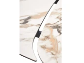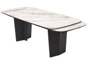 Описание модели: двухсторонняя торцевая система раскладывания, две независимые вставки по краям по 50 см позволяют увеличить длину столешницы на 250 или 300 см при необходимости, испанская керамика, толщина столешницы 13 мм (3 мм керамика + 10 мм закаленное стекло), не впитывает загрязнения, термостойкая,