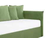 Серия Milano — функциональные кровати-кушетки с мягкими царгами. Идеальный вариант для детской или в качестве гостевого спального места. Днем может выполнять роль уютного диванчика, а ночью — комфортной кровати. Кушетка разработана с учетом регулярного сна и формирования правильной осанки. Отличная поддержка спины, равномерное распределение нагрузки. Также можно дополнить ортопедическим матрасом средней жесткости с блоком независимых пружин и натуральной кокосовой койрой, любым количеством подушек, выкатным ящиком, который можно использовать для хранения белья и в качестве ещё одного спального места. Лаконичный стиль модели подойдет для любого пространства. Персонализируйте Milano, выбирая нужный вам материал и цвет обивки.