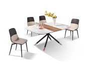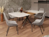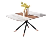 Обеденный стол с раздвижной конструкцией и металлическими ножками — эксклюзивная модель, которая станет центром притяжения вашей кухни. Стол-трансформер —его деревянная часть легко задвигается, оставляя сплошное мраморное покрытие. Отличный вариант для небольших пространств, где бывает много гостей – с этим столом вы будете спокойны, что все близкие поместятся за одним столом и вы здорово проведете время. Боковые части покрыты керамикой, средняя часть — шпоном грецкого ореха. Стол выглядит благородно и элегантно. Вы будете получать удовольствие от этого дизайна, а все гости будут восхищаться им. Необычная прямоугольная форма смотрится свежо и ярко. Такая форма сейчас пользуется особой популярностью, затмевая собой привычный круг. Собираться всей семьей за этим столом удобно и комфортно. А благодаря закругленным уголкам, стол подойдет в те дома, где есть маленькие дети. Резиновая заглушка на ножках надежно фиксирует стол и удерживает на месте, не царапая поверхность. Можно не беспокоиться о том, что мебель повредит пол или сдвинется с места.