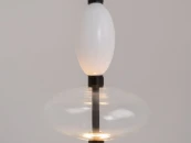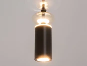 Черная металлическая арматура. Плафоны из стекла коньячного, белого, дымчатого цвета и прозрачный. Источник света комбинированный: нижний - съемная лампа с цоколем GU10, верхний - встроенный LED. Цветовая температура светильников 2700К, угол рассеивания света 120 градусов. Высота регулируется с помощью провода длиной 3 м. Монохромный дизайн, стеклянные элементы впишутся в различные стили интерьеров.