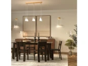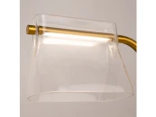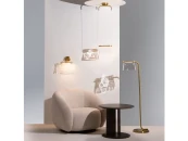 Цвет металлической арматуры — латунь с сатинированным финишем, плафоны — прозрачное стекло. Источник света: LED. Цветовая температура светильников 3000К, угол рассеивания — 120 градусов. Настенные бра и подвесные светильники оснащены регулируемым проводом длиной до 3 метров, что позволяет использовать их в помещениях с высокими потолками.