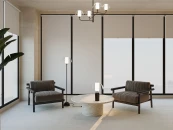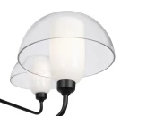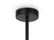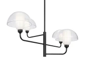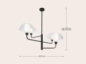 Металлическая арматура, цвет - черный. Светильники стилизованы под форму песочных часов с обтекаемой формой. Керамические элементы с глянцеовй глазурью. Подвесные светильники с плафонами из белой керамики с прозрачным, черно-белым, золото-белым и белым стеклом. Регулируемая высота подвесных светильников.
