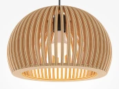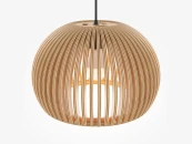 Материал арматуры – металл, цвет – черный. Абажур – 5-ти слойная фанера бежевого оттенка, покрытая специальным ла- ком. Тканевый черный провод. Регулируемая высота. Простые лаконичные форма, природные материалы. Цоколь E27.