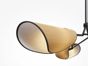 Черная металлическая арматура, коричневые плафоны из натуральной рогожки с черной тканевой окантовкой. Источник света: цоколь G9. Сменные лампы не входят в комплект. Регулируемая высота светильников с помощью разборных штанг. Плафоны пропускают значительный световой поток, он также попадает в пространство через отверстия снизу. Ассиметричная форма для разных стилей интерьеров. Левостороннее и правостороннее бра компонуется в интересные композиции.