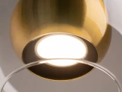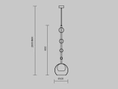 Арматура - металл, плафоны - стекло. Цветовый комбинации арматуры и плафона: черный + прозрачный, черный + янтарный, латунь + прозрачный. Элементы декора - выдувные бусины из стекла. Высота проводов регулируется. Источник света - лампа с цоколем GU10.