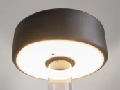 Портативный настольный светильник. Результат творческой коллаборации искусственного интелекта и предметного дизайнера. Два варанта корпуса светильника: с металлической тонкой ножкой на плоском круглом основании, со стеклянным основанием с интегрированным в него вазой. Плафон снимается с основания для удобного ухода за стеклянными элементами и подзарядки аккумулятора, расположенного в плафоне. Два варианта цвета стеклянных моделей - прозрачный и серый. Плафоны с рассеивателем из акрила в 3х цветах: черный, золотой, белый. Удобный сенсорный выключатель вверху плафона. Micro USB разъем для подзарядки скрыт в нижней части плафона. LED-источник света. Регулируемая цветовая температура от 2200К до 4000К.