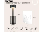 Портативный настольный светильник. Результат творческой коллаборации искусственного интелекта и предметного дизайнера. Два варанта корпуса светильника: с металлической тонкой ножкой на плоском круглом основании, со стеклянным основанием с интегрированным в него вазой. Плафон снимается с основания для удобного ухода за стеклянными элементами и подзарядки аккумулятора, расположенного в плафоне. Два варианта цвета стеклянных моделей - прозрачный и серый. Плафоны с рассеивателем из акрила в 3х цветах: черный, золотой, белый. Удобный сенсорный выключатель вверху плафона. Micro USB разъем для подзарядки скрыт в нижней части плафона. LED-источник света. Регулируемая цветовая температура от 2200К до 4000К.