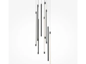 Материал арматуры - алюминий, цвет - черный, латунь. Изящные металлические «струны» в цвет арматуры со встроенным световым модулем прикрыты белым акриловым рассеивателем. Серия для акцентного и дополнительного освещения. Длина подвесных моделей регулируется. LED-источник света. У подвесных светильников есть функция диммирования. Цветовая температура 3000К.