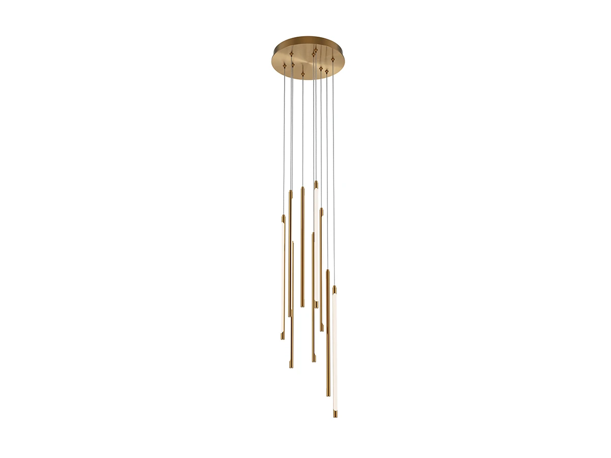 Материал арматуры - алюминий, цвет - черный, латунь. Изящные металлические «струны» в цвет арматуры со встроенным световым модулем прикрыты белым акриловым рассеивателем. Серия для акцентного и дополнительного освещения. Длина подвесных моделей регулируется. LED-источник света. У подвесных светильников есть функция диммирования. Цветовая температура 3000К.