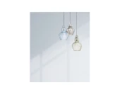 Серия современных подвесных светильников со стеклянными плафонами необычной формы. В них умело задекорированы флористические мотивы. Арматура изготовлена из хромированного металла. В конструкции светильников используется витой провод. Модели серии представлены в прозрачном, зеркальном, зеленом и голубом цвете. Высота подвесных светильников регулируется длиной шнура.