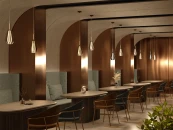 Металлическое основание, цвет — черный. Двойные стеклянные плафоны. Многообразные геометрические формы плафонов. Цвет стекла: зеркальный золотой, кофейный и дымчатый, а также градиентный белый. Регулируемая длина провода — 3 метра. Источник света — лампа с цоколем Е27.