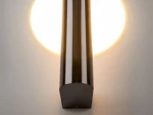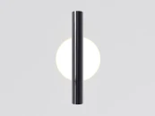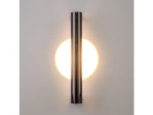 Металлическая арматура, цвета: черный, хром, золото. Источник света: LED-светодиод. Световая температура 3000К. Свет переотраженный, угол рассеивания 100 градусов. Дизайнерское решение с использованием линзы, создающей акцентный круг на стене и эффекта переотражения. Поверхность арматуры глянцевая, полузеркальная. Бра подойдет для зонирования помещений.