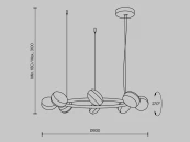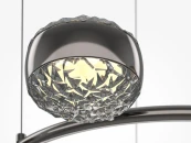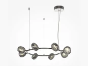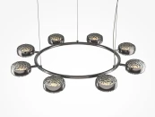 Два цветовых сочетания: сатинированная арматура из металла в цвете латунь в комбинации со стеклянными плафонами янтарного оттенка или трендовый черный хром с глянцевым финишем в сочетании с тонированными светло-серыми плафонами. Источник света: LED. Цветовая температура 3000К, угол рассеивания 120 градусов. Провод длиной 3 м можно регулировать по высоте — светильник подходит для помещений с высокими потолками.