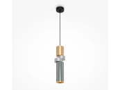Металлическая арматура сочетает серый, золотой и серебряный цвет. Комбина ция цилиндрических форм в дизайне. Высота регулируется с помощью кабеля. Цоколь GU10