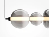 Светильники с тонированными выдувными стеклянными плафонами (дымчатыми или янтарными) и металлической арматурой (черной или цвета латуни). Окрашивание плафонов градиентное. Источник света: LED. Световой элемент установлен внутри акрилового рассеивателя. Цветовая температура источника света – 3000К, угол рассеивания — 120гр. Торшеры снабжены Push-кнопкой на проводе.