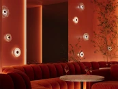 Металлическая арматура, цвет - латунь. Декоративные плафоны из литого стекла. Они рассеивают свет и дают легкие блики на стенах. Стекло плафонов может быть прозрачным или тонированным с паттерном молочного оттенка. Встроенный LED-источник света имеет цветовую температуру 3000 К, угол рассеивания — 120 градусов.
