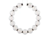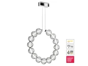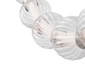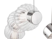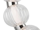 Арматура из металла, цвет – хром. Акцентный декор в виде рельефных сфер из литого стекла. Источник света – светодиодная лента – скрыта под акриловым рассеивателем. Регулируемая высота подвесных светильников.