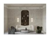Арматура из металла, цвет – хром. Акцентный декор в виде рельефных сфер из литого стекла. Источник света – светодиодная лента – скрыта под акриловым рассеивателем. Регулируемая высота подвесных светильников.