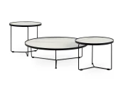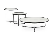Fonot — коллекция журнальных столиков из трех вариаций. Единая визуальная концепция заключается в лаконичности и легкости. За эффектное воплощение отвечает сочетание плавных и строгих линий, а также необычный союз материалов. Спеченный камень белого цвета гармонично контрастирует с изящными черными ножками из металла.