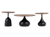 Lemosab — коллекция из трёх журнальных столиков, которые можно использовать как отдельно, так и в комбинации друг с другом. Их ДНК — плавные эргономичные формы и визуально контрастный образ. Столешница из шпона грецкого ореха привносит природную эстетику. Её «теплый» характер выделяется на фоне брутального основания из железа с порошковым покрытием черного цвета.