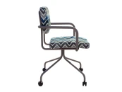 Стул-кресло изготовлен для использования его в качестве кресла оператора, посетителя или рабочего кресла в домашних условиях. В основе металлокаркас, обшитый ппу и тканью, на колесиках. Металл окрашен. Яркий современных акцент, альтернатива пластиковым скучным офисным креслам.