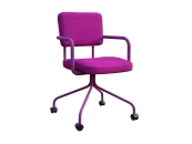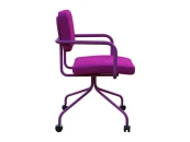 Стул-кресло изготовлен для использования его в качестве кресла оператора, посетителя или рабочего кресла в домашних условиях. В основе металлокаркас, обшитый ппу и тканью, на колесиках. Металл окрашен. Яркий современных акцент, альтернатива пластиковым скучным офисным креслам.