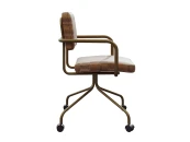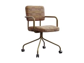 Стул-кресло изготовлен для использования его в качестве кресла оператора, посетителя или рабочего кресла в домашних условиях. В основе металлокаркас, обшитый ппу и тканью, на колесиках. Металл окрашен. Яркий современных акцент, альтернатива пластиковым скучным офисным креслам.