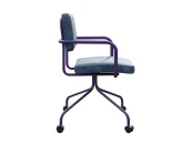 Стул-кресло изготовлен для использования его в качестве кресла оператора, посетителя или рабочего кресла в домашних условиях. В основе металлокаркас, обшитый ппу и тканью, на колесиках. Металл окрашен. Яркий современных акцент, альтернатива пластиковым скучным офисным креслам.