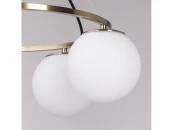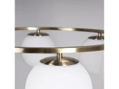 Металлическое основание светильника гальванизировано в цвет античной бронзы. Подвесная люстра декорирована стеклянными плафонами белого цвета.
