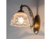 Основание вертикального настенного бра выполнено из комбинации сплавов металлов и гальванизировано в цвет античной бронзы. Корпус выполнен из металла по технологии прессования. Рожки выполнены из сплава алюминия с цинком по технологии художественного литья. Настенное бра вниз декорировано стеклянным плафоном, матированным по трафарету.