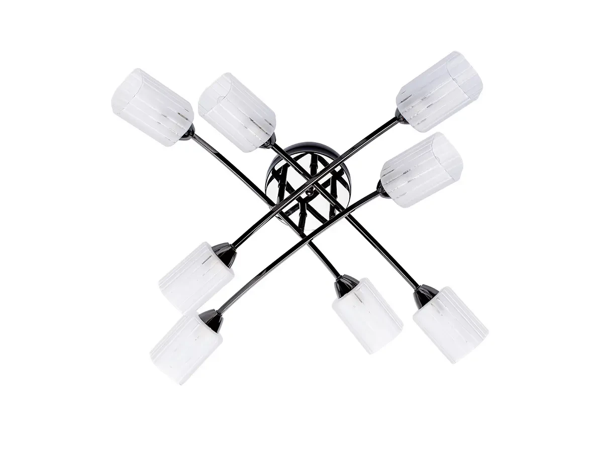 Основание светильника выполнено из металла и гальванизировано в цвет хрома. Стеклянные плафоны отлиты в форму и наполовину матированы . Лаконичный стиль модели универсальное решение для интерьеров различной стилистикиПрозрачные частично матированные плафоны обеспечивают мягкий световой поток Компактная высота светильника идеальна для стандартной высоты потолка.Заменяемые источники света удобны в эксплуатации