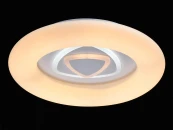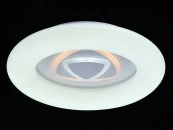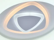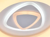 Эргономичный дизайн с акцентом в центре в виде геометрического рисунка. Многорежимность света с изменением цветовой температуры и яркости света является элементом светодизайна. Мощные светодиоды последнего поколения обеспечивают яркое освещение и долгий срок службы. Наличие ПДУ, управляет 6-.ю режимами освещения, универсальный пульт требует сопряжения со светильником. Режим комбинировнного света включает теплый, холодный свет, режим ночника. Возможность диммирования яркости светового потока и цветовой температуры позволяет создавать требуемое настроение в помещениии. Компактный светильник для стандартной высоты потолка.