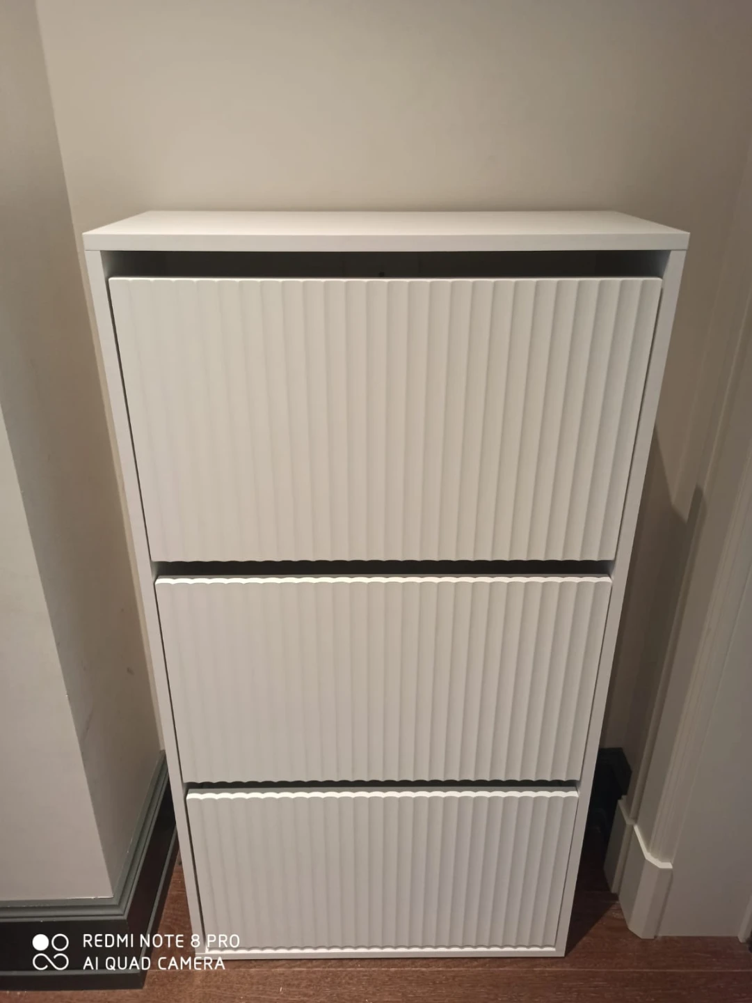 Обувница Campo представляет собой корпус с тремя откидными фасадами, на каждом из которых установлено отделение для хранения обуви в два ряда.