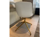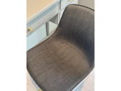 Стул рабочий Bang-bang, вращающийся, с газлифтом (без возможности регулирования высоты). Спинка и сиденье из пластика, внутренняя часть обита тканью - рогожка серого цвета. Ножки - алюминий с покрытием золотистого цвета. На ножках стула защитные подпятники.