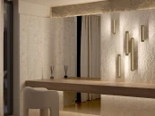 Металлическая арматура в цвете золото и хром. Декор — фактурное прозрачное стекло. Дизайн, вдохновленный ювелирным искусством Мезоамерики. LED-источник света. Цветовая температура 3000К.