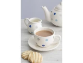 Стильный чайник в горошек прекрасно подойдет для заваривания и подачи любимых напитков, станет ярким акцентом на столе и в интерьере кухни. Чайник выполнен из высококачественной каменной керамики. Рисунок наносится вручную. Можно мыть в посудомоечной машине и помещать в микроволновую печь. Объем: 650 мл.