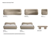 Диван и кресло оригинальной формы выполнены в минималистичном стиле. У мягкой мебели отсутствуют подлокотники, сиденье и спинка напоминают волну. Необычный дизайн сочетается с продуманной эргономичностью, комфортом при сидении и качественными материалами.