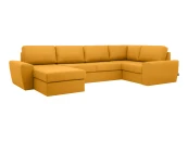 Линейка диванов «Peterhof» собирается из модулей, как конструктор, и позволяет выбрать модель, которая будет отвечать вашим индивидуальным потребностям. Из секций можно собрать двухместный диван, удобный диван с оттоманкой или просторный угловой диван на любое количество мест. 5 видов подлокотников на выбор. Большое разнообразие материалов обивки по фактуре и цвету.||Представленная модель - угловой диван-кровать с оттоманкой. Диван может быть выполнен с правым и левым расположением углового модуля. Размер спального места 1840х1330 мм. Механизм трансформации - «Sedaflex». Который позволяет ежедневно раскладывать диван, не опасаясь за частую эксплуатацию. Каркас состоит из хвойных брусков и влагостойкой берёзовой фанеры. Использование этих материалов обеспечивает экологичность и долговечность. Основание спального места - 9 ортопедических лат, которые обеспечивают дополнительную амортизацию и образуют ровное спальное место.||В комплект входит плотный матрас из пенополиуретана высотой 90 мм. Нагрузка на одно спальное место - 110 кг. Наполнением подушек сиденья служит настил из нескольких слоев высокоэластичного пенополиуретана и синтепона. Наполнитель 6 подушек спинки - синтепух. Он идеально держит форму, гипоаллергенный, не впитывает влагу и запахи. Подушки имеют внутренний чехол из спанбонда, прошитый в три отсека, чтобы наполнитель не скатывался и хорошо держал форму. Лицевые чехлы подушек съёмные, на молнии, что позволяет их легко чистить. «Peterhof» - стильный и вместительный диван, который отвечает самым высоким требованиям.