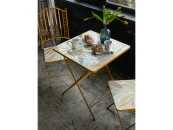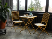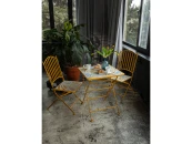 Яркий и стильный дизайн: Кресла с порошковым покрытием солнечного желтого цвета и столик с изысканной столешницей, имитирующей мозаику, моментально поднимут настроение и добавят ярких красок в вашу жизнь. Каждый элемент продуман до мелочей, чтобы создать атмосферу тепла и уюта.