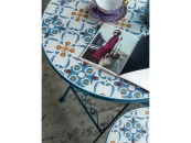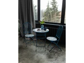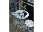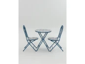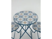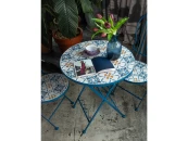 Комплект мебели САПФИР — это стильное решение для создания уютного пространства как на даче, так и в кафе или на балконе. Этот складной бистро-гарнитур выполнен из качественного металлического набора с изысканным порошковым покрытием синего цвета, что придает ему современный и элегантный вид. Особенностью гарнитура является декор сидений кресел и столешницы, имитирующий мозаику, добавляя неповторимую деталь дизайна.