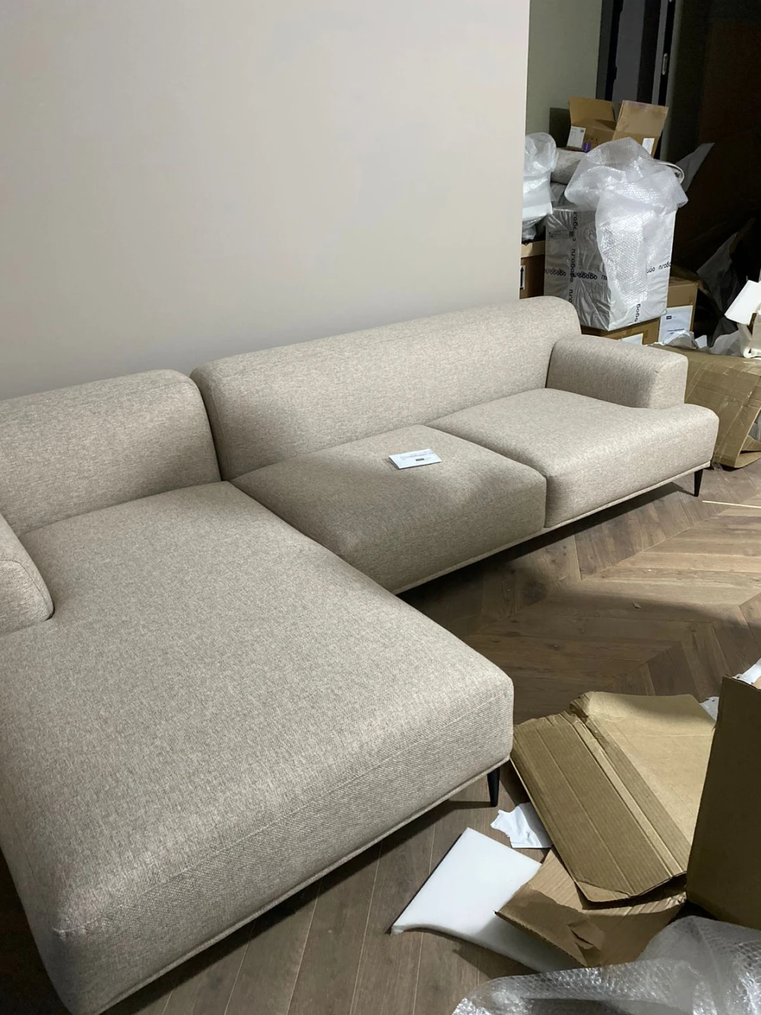 Покупкой очень довольны. Плюсы: Внешний вид(смотрится дорого), качество (модули и боковины соединяются крепко, ничего не болтается) Ткань (приятная к телу)