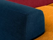 Модель отличается скульптурностью и динамичностью, а также популярными нотами конструктивизма. Основа дизайна — четкий силуэт, комбинация строгих и плавных линий. Геометрия на пике интерьерной моды. «Фишка» линейки — сочные цветовые сочетания в стилистике колор-блокинга. Оттенки могут быть темными, светлыми, играть на контрасте или едва заметно сменять друг друга, что поддержит небанальный характер пространства. Каркас дивана выполнен из бруса хвойных пород и высококачественной фанеры. Высокая спинка и мягкое сиденье обеспечивают максимально комфортные ощущения.