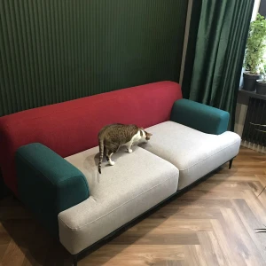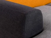 Модель отличается скульптурностью и динамичностью, а также популярными нотами конструктивизма. Основа дизайна — четкий силуэт, комбинация строгих и плавных линий. Геометрия на пике интерьерной моды. «Фишка» линейки — сочные цветовые сочетания в стилистике колор-блокинга. Оттенки могут быть темными, светлыми, играть на контрасте или едва заметно сменять друг друга, что поддержит небанальный характер пространства. Каркас дивана выполнен из бруса хвойных пород и высококачественной фанеры. Высокая спинка и мягкое сиденье обеспечивают максимально комфортные ощущения.