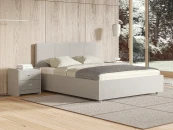 Элегантная кровать с изголовьем украшенным декоративной вертикальной строчкой. Модель изготовлена из ДСП.