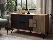 Современные дизайнеры непрерывно радуют владельцев оригинальными разработками конструкции мебели. Одна из них – комод Макао, обладающий привлекательным внешним видом, функциональностью и компактными размерами. Эта модель сможет гармонично дополнить любую композицию, создав изысканный ансамбль с другими элементами коллекции. Материалом для производства комода служит ЛДСП EGGER сдержанного оттенка «угольный камень» и «ржавый камень».