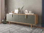 Комод под TV с четыремя дверками Line, серый/коричневый. Стандартная конфигурация ШхВхГ: Материал корпус ЛДСП, фасад МДФ с гравировкой, ноги - массив березы. Глубина, см 45. Высота, см 64. Ширина, см 164. Стиль скандинавский. Особенности поставляется в разборе. Количество ножек на 4 ножках.