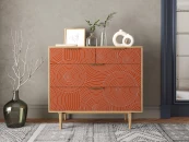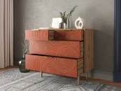 Комод с четыремя ящиками Line, красный. Стандартная конфигурация ШхВхГ: Материал корпус ЛДСП, фасад МДФ с гравировкой, ноги - массив березы. Глубина, см 50. Высота, см 94. Ширина, см 94. Стиль скандинавский. Особенности поставляется в разборе. Сборка оплачивается отдельно. Количество ножек на 4 ножках.